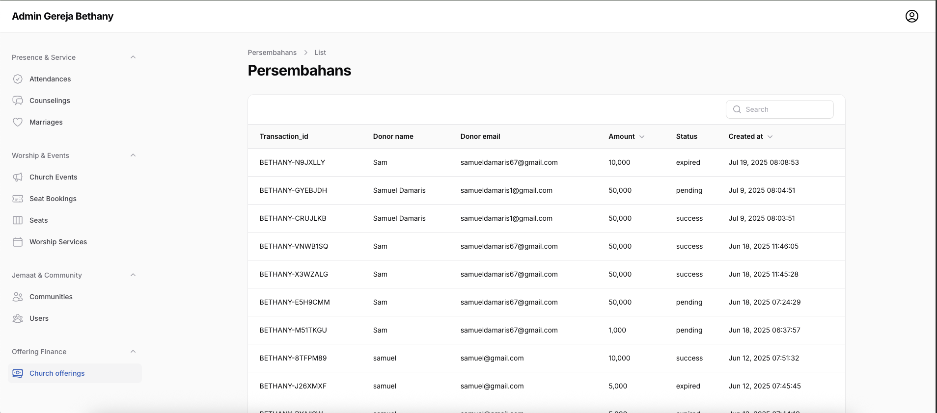 Aplikasi Manajemen Gereja Bethany Batu